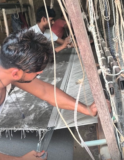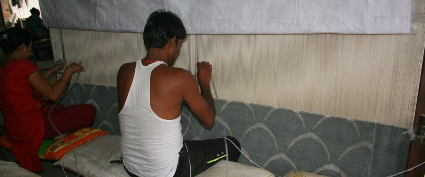 - Die Kettfäden bilden die Grundstruktur des Teppichs und werden auf dem Webstuhl vertikal gespannt.